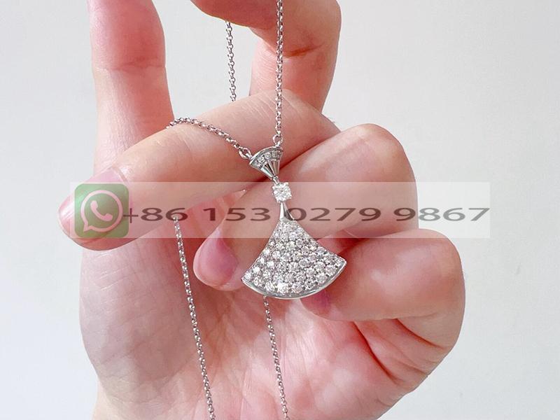 DIVAS’ DREAM necklace in 18 kt white gold with pendant set with one diamond and pavé diamonds.