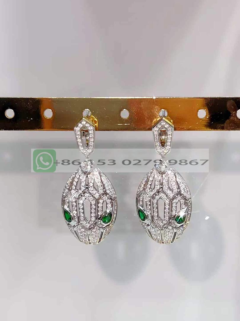 Capturing the power of attraction, the Serpenti earrings glorify the head of the snake in a jeweled design that sparkles with glamour and sophistication. Inspired by the sensuality of a woman’s gaze, Bulgari reinterprets its spirit animal, focusing on the magnetic power of the eyes and channeling their irresistible ability to seduce.