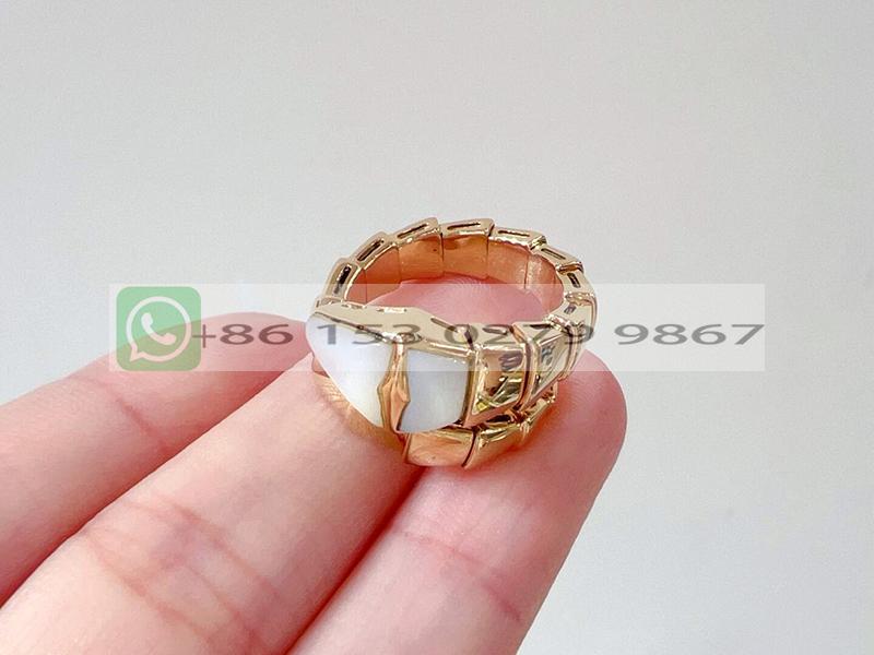Bulgari anello modello intarsio in oro rosa 18kt con madreperla bianca e diamanti naturali taglio brillante. Misura 12,