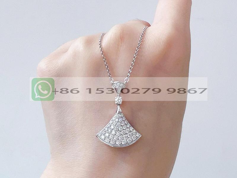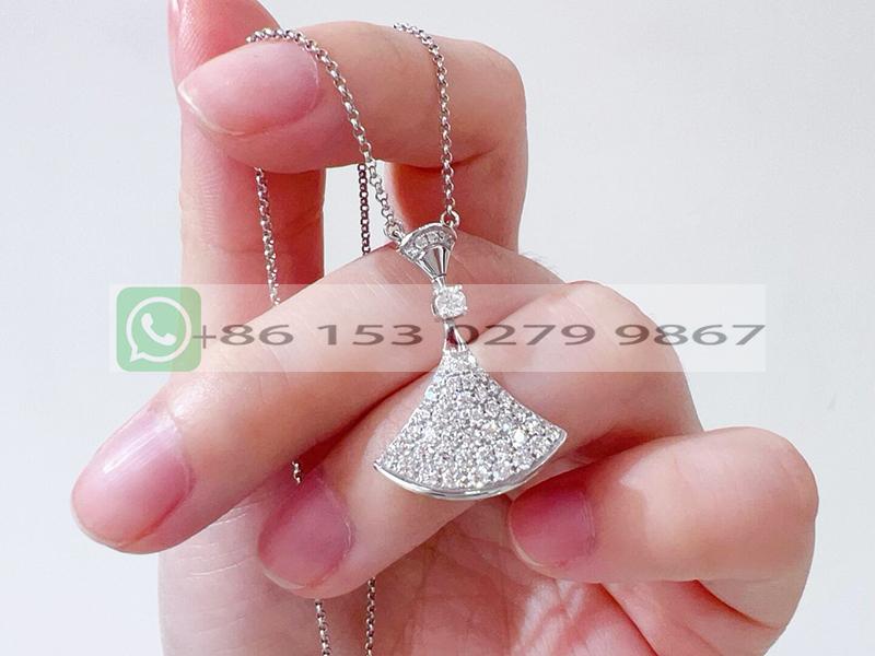 DIVAS’ DREAM necklace in 18 kt white gold with pendant set with one diamond and pavé diamonds.