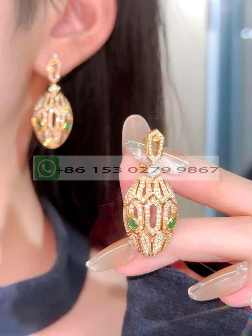 Capturing the power of attraction, the Serpenti earrings glorify the head of the snake in a jeweled design that sparkles with glamour and sophistication. Inspired by the sensuality of a woman’s gaze, Bulgari reinterprets its spirit animal, focusing on the magnetic power of the eyes and channeling their irresistible ability to seduce.